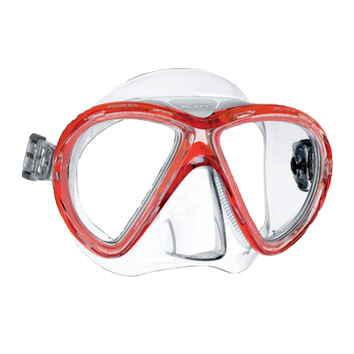 The Mares X-VU Mask is a nice compact size mask, with small volume, hence easy to clear and equalise. It is also very lightweight to carry around. The very minimal frame design, with the teardrop at the bottom, gives divers great visibility. Furthermore with this design, when looking down, divers no longer have to tilt their heads as much.